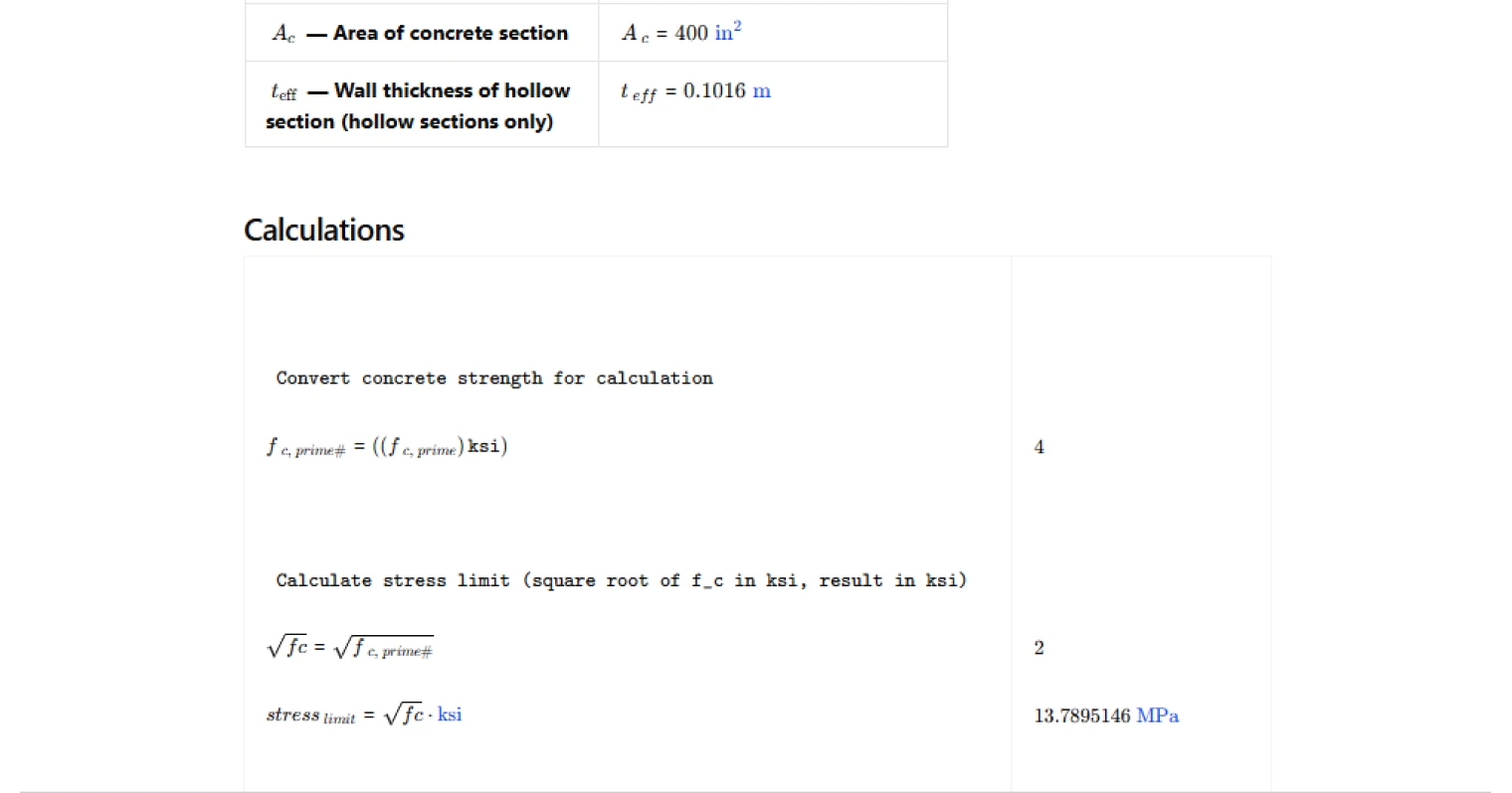 - Checking engineer — audit cross-sectional stress limits against code equations with full transparency into each stress component and the applicable equation path.