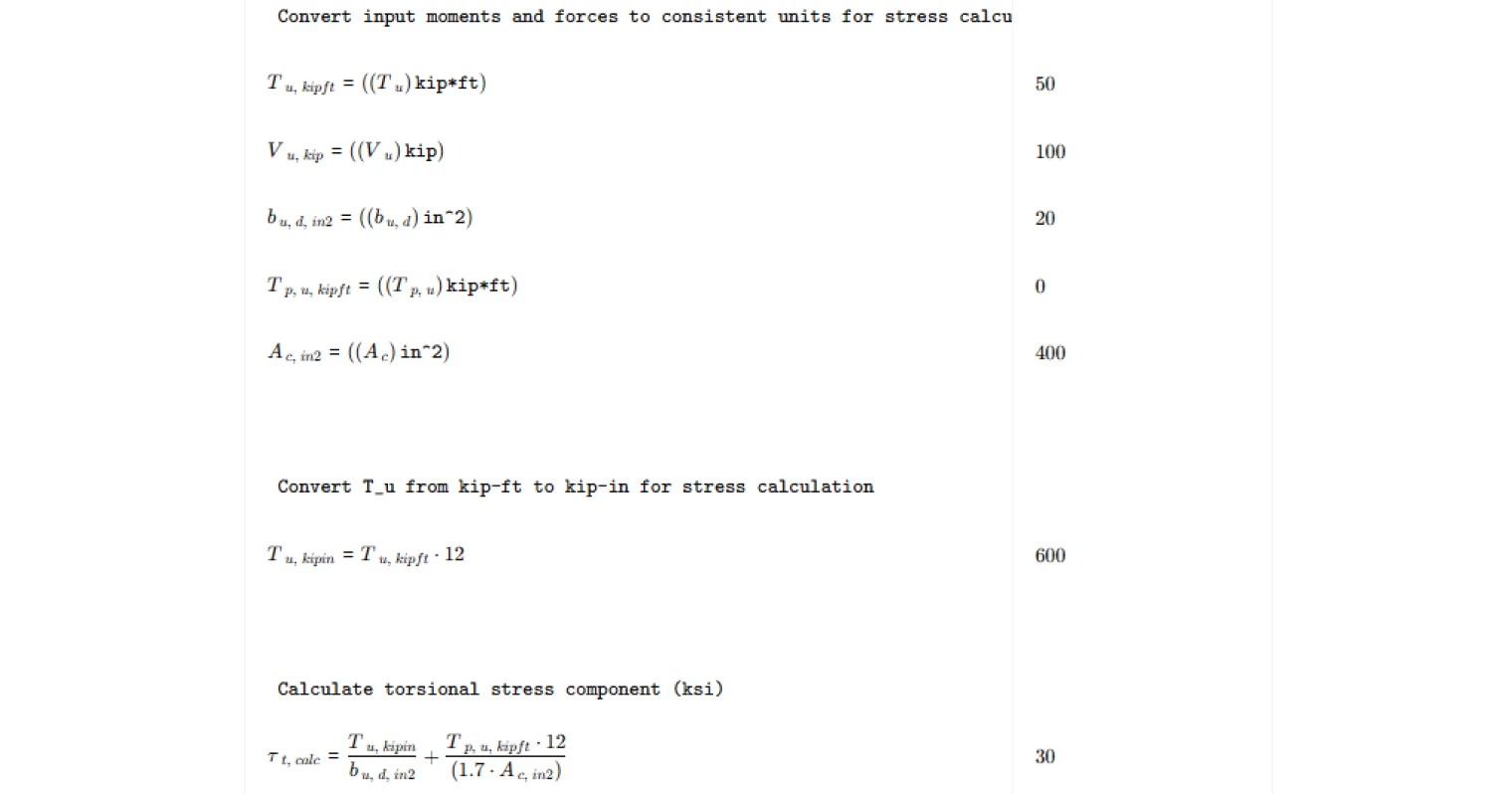 - Using inconsistent units across stress terms — torsional moments must be converted to force-length units consistent with the stress denominator; mixing kip-ft and kip-in in the same expression produces incorrect stress values by a factor of twelve.