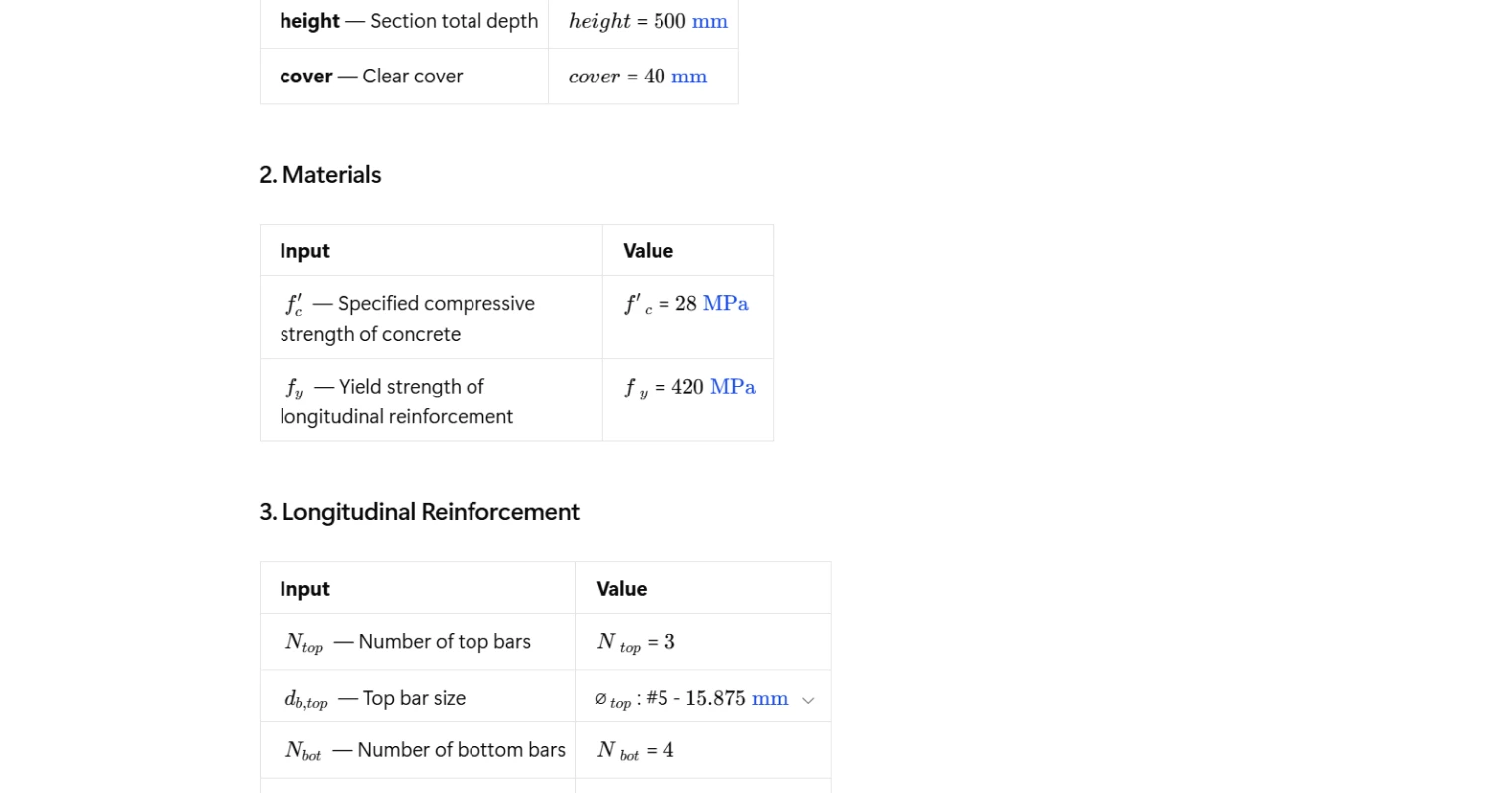 - Using inconsistent unit systems — mixing imperial bar designations with metric section dimensions, or entering f'c in psi while fy is in MPa, will produce incorrect reinforcement ratios and moment values. Keep all inputs in a consistent unit system throughout.