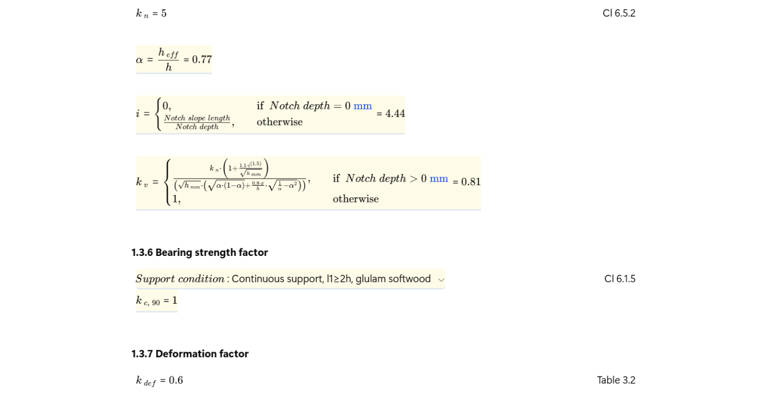 - Timber designer — assess notched beam sensitivity by changing notch geometry inputs and seeing the resulting notch factor and effective section depth update.